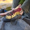 There is, of course, the question of sensitivity. Performance demands a skintight fit, and that demands that the skin of your foot press right against the interior of the shoe. It can be said that going sockless gives you a better “feel” for the holds, that socks dull the sensation, like wearing a raincoat in the shower.