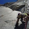 “I screamed a lot,” said Pineau. “It made this day really shaky to me. My mindset is to never fall.” Kelleghan explains that Watkins is particularly slippery and glassy. Pineau fell at one of the safest places possible, but still whipped 10 feet with rope stretch. “I knew it was bad because she took the whip and then the next pitch, a 5.10, she usually frees,” says Kelleghan. “But this pitch, she was yelling curse words in French and not freeing it.” But their time was still faster: five hours, 15 minutes, nearly within range.