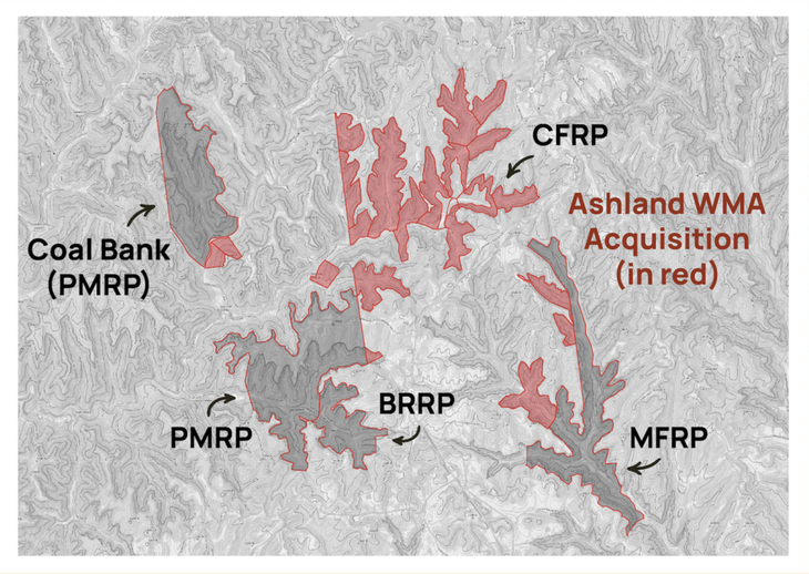 The land in question was part of the former Ashland Wildlife Management Area (WMA), a privately owned, 2,506-acre tract of land managed for hunting by the Kentucky Department of Fish and Wildlife Resources. The RRGCC had its sights set on 718 acres that would significantly expand climbing in the Red River Gorge. This acreage includes an expansion of two existing climbing areas within the Red: the Pendergrass-Murray Recreational Preserve (PMRP) and the Miller Fork Recreational Preserve (MFRP). It also spans an entirely new area between PMRP and MFRP: the 582-acre Cave Fork Recreational Preserve (CFRP).