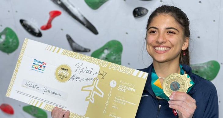 Natalia Grossman garnered an Olympic berth after taking the crown in the women’s boulder and lead combined. The 22-year-old Salt Lake City-based climber earned 172.4 points, while teammates Brooke Raboutou and Anastasia Sanders placed second and fourth with 165.4 and 115.1 points, respectively. After the bouldering portion, Grossman held nearly a 15 point advantage; despite a strong performance from Raboutou in lead, Grossman maintained her edge for the gold. Following a disappointing World Championships in Bern, Grossman reevaluated her training and approach to climbing. “I cut my training in half. And I just focused on a lot more things besides climbing. And so in this case, less was more for me,” she says. Grossman attributes her success in Santiago to her mindset, “One day at a time, one boulder at a time, one move at a time. After a really good semi-final round, I felt more confident and I felt like myself … There was nothing left to lose and I was just able to give it everything I had,” she says.