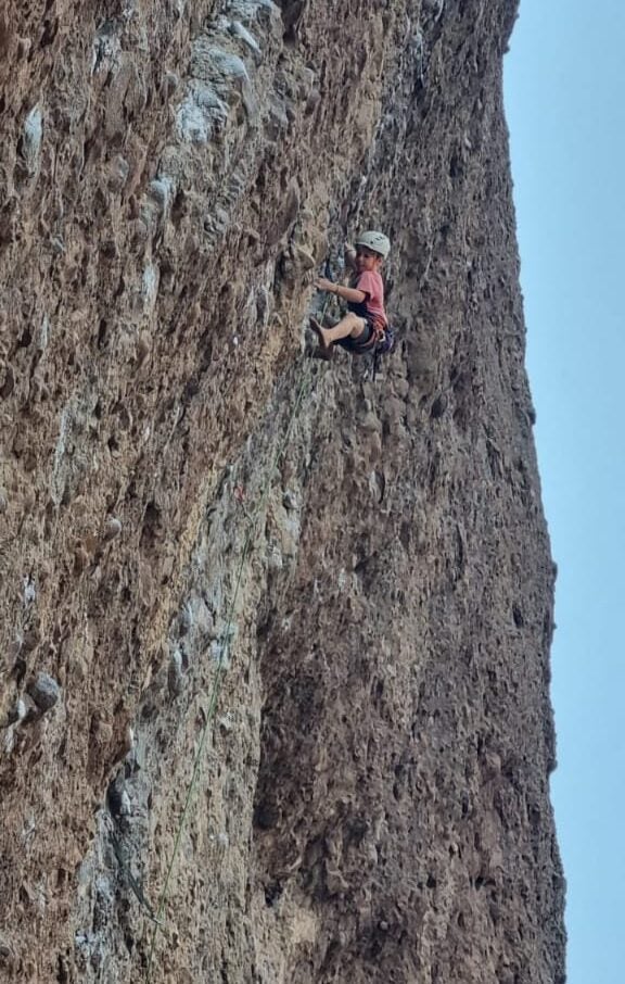 Leo is currently in fifth grade at a Waldorf School in Valparaiso, and his favorite class is movement. When he’s not climbing, he likes to whittle and play games. He spoke with Climbing over a Google Meets video chat while standing at the family’s kitchen table. His curly brown hair hung down over his brown eyes and he smiled widely. Leo speaks loudly and quickly when excited, but he was shy about his achievements; when asked about what it was like to send Tecnoking, his answers became one-word whispers to his parents, who sat nearby.