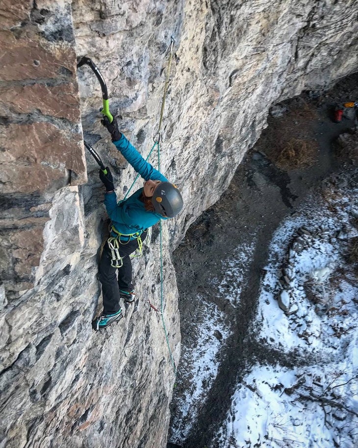 It wasn’t until my name was called that I realized I’d forgotten my gloves. I needed them because this thing I was about to compete in, CityROCK Ice Night, was a drytooling competition. Thin, grippy gloves, I would soon learn, are the best antidote to sweating right off your ice-tool handles mid-route.