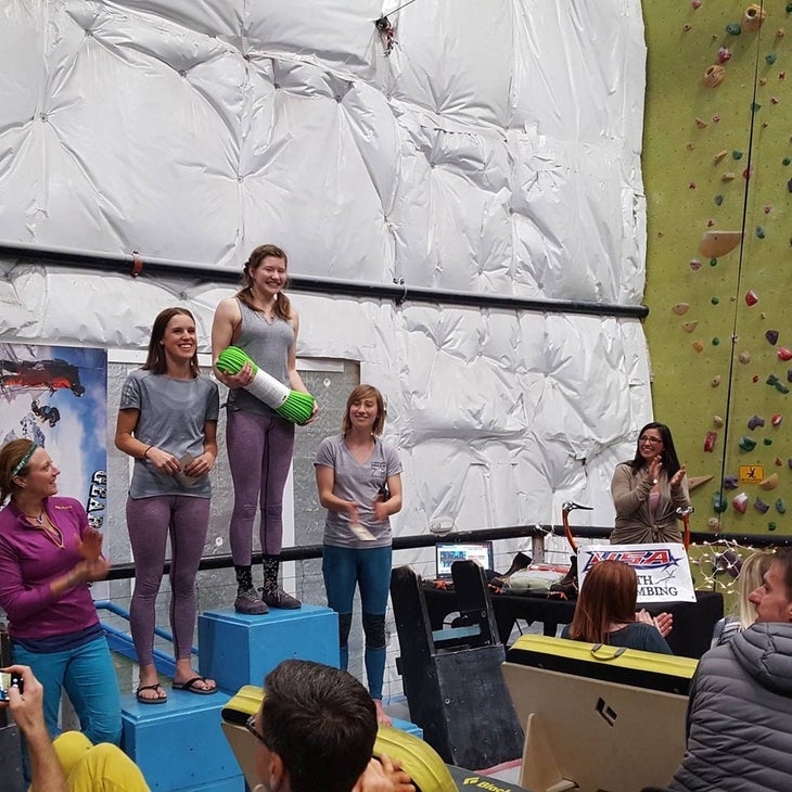 I had registered for Ice Night, my first real climbing competition, in December 2017 mainly because my new boyfriend had told me it would be fun. Plus, he said, all his friends would be there; we had to go. But at the last minute, a work commitment popped up and he had to back out. No problem, I’d thought. I’m a strong, independent woman. I’ll go by myself.