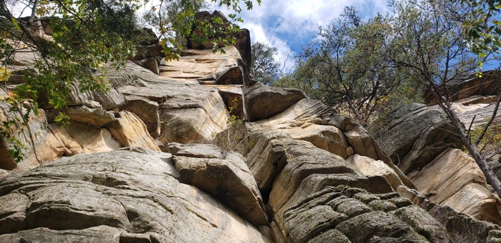 Junge was climbing with two friends—Riley Stephenson and Andy Koerber—at Starr Mountain, Tennessee. The little-known spot hosts just nine routes with top anchors. A trail to the top of the bluff, which overlooks the Hiwassee River, gives hikers access to the view while climbers use the trail to set up top ropes. The climbs themselves begin from an easy-to-access ledge, which drops off about 40 to 60 feet (depending on location) to the ground.