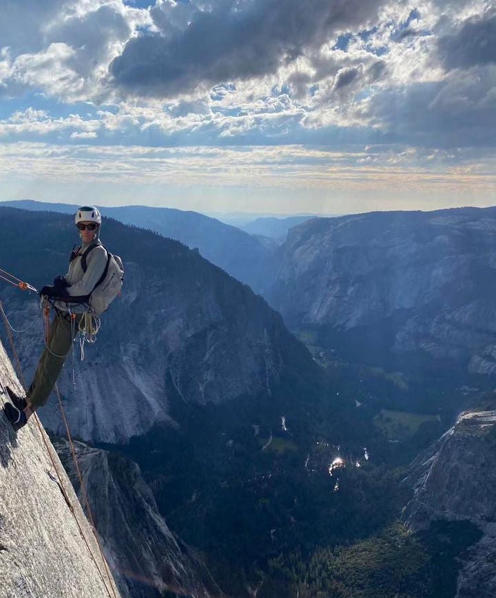 “You don’t need that rib to climb, I’m finding out,” joked Katzenmeyer. After a detailed assessment back at camp, Katzenmeyer decided he could push on. The same day after descending East Face, on Mount Whitney, they raced Hurricane Hilary up the coast. They arrived in Tahoe to tick off Lover’s Leap via Traveler Buttress (5.9; 500ft) the same day before sprinting to Yosemite, where their biggest day lay ahead.