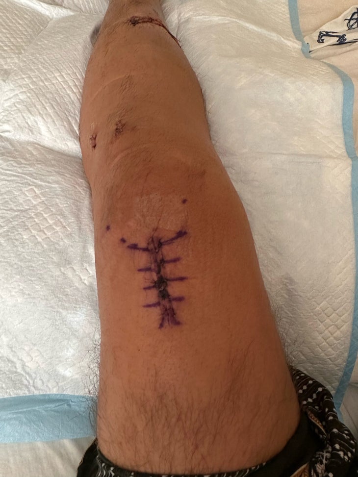 The treatment and surgery, however, were still incredibly brutal. “I had three nurses holding my leg and basically hammering the bone because it wasn’t going back in.” The following day, he underwent surgery. “They opened up my knee, drilled a hole through my shin to my ankle, then put a metal rod down that hole. Where my shin is supposed to be is now a metal rod.”