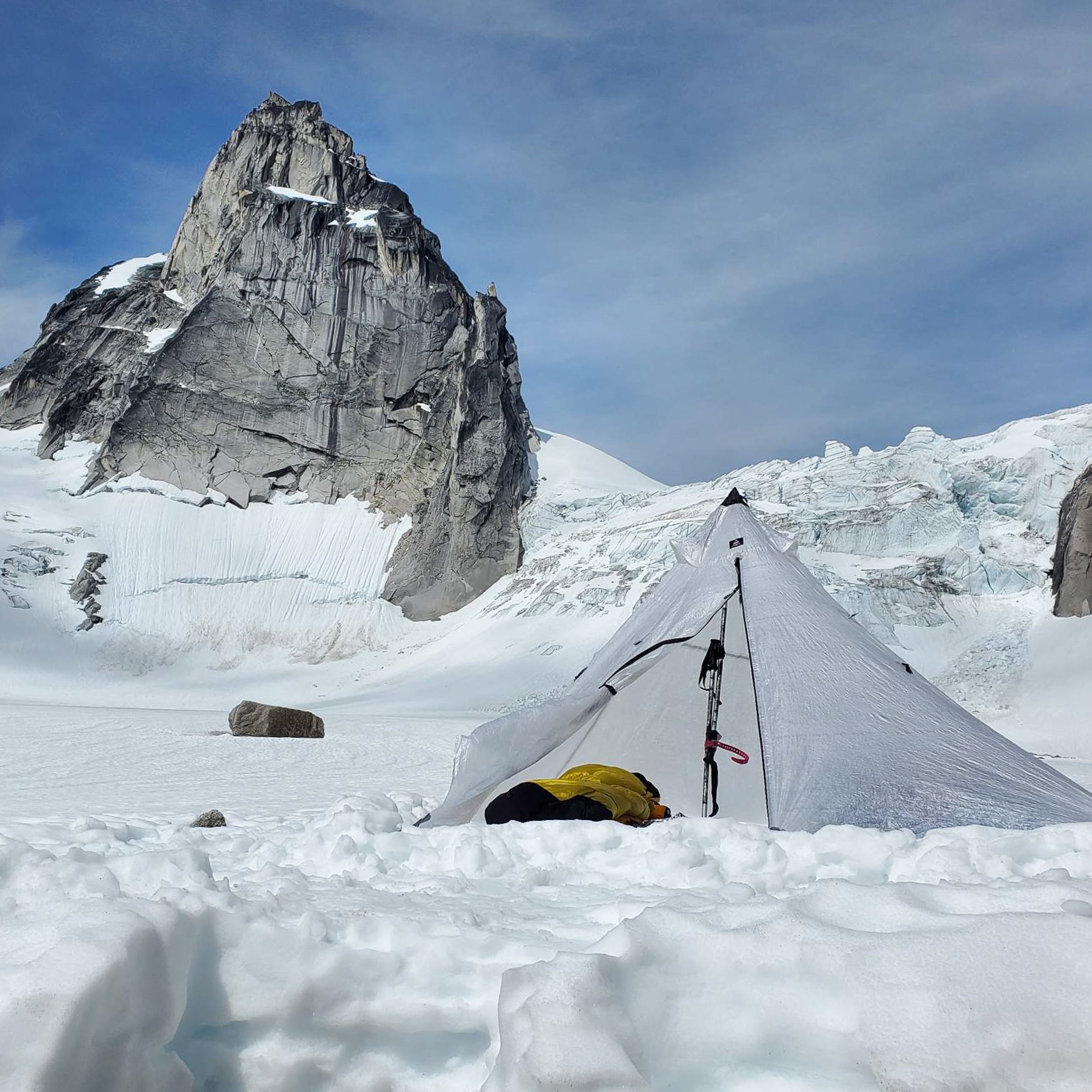Don’t let the UltaMid 2’s floorless design fool you into thinking it’s some weak, single-use structure—the folks at Hyperlite Mountain Gear are well known for their bomb-proof products and the pyramid tent is no exception. Our testers were seriously impressed with the UltaMid 2’s strength while waiting out a thunderstorm that pounded their glacier-bound camp. With just ski-strapped trekking poles propping up the shelter, the UltaMid 2 held fast—and shed the downpour with ease—allowing them to attack their alpine-rock objectives with high spirits later that day.
