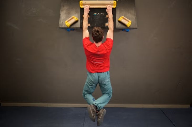 A form of training that was popular in the 80s and 90s, this hang protocol initially made a comeback in the 2000s when the company Zlagboard created a leaderboard of pro climbers’ to-failure long duration hangs. Multiple World Championship winner Ramón Julián Puigblanqué even held the world record for some time, lending more credence to the validity of the hang. However at Lattice, we spent a couple of years collecting data on this particular method of hanging and its correlation to performance and found little to no relevance. This is not to say that long duration hangs are without merit. In fact, we see huge benefits in terms of rehab loading protocols, introducing new hangboard specifics to newer hangboarders, and even approaches in making certain injury-prone fingers robust to injury risk.