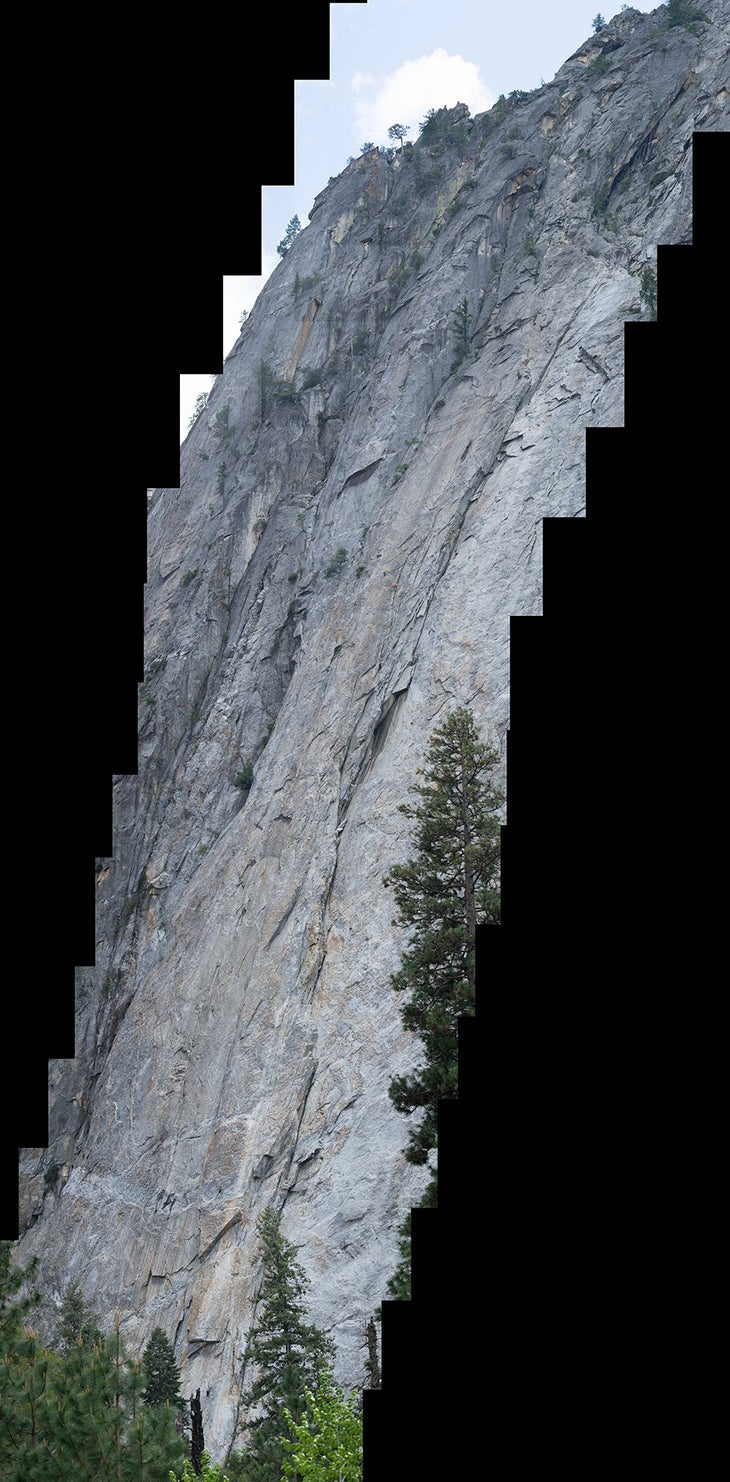 In conventional military fashion, Bridwell soon commanded a platoon of Camp 4 draftees to a high point 600 feet up the cliffside. Here, buckling knifeblades and holdless granite halted vertical progress, though the Bird thought it possible for his squad to execute a “column left” and traverse off to easier rock on the flank. In the spring of the following year, they did just that, and the route was completed: The Central Pillar of Frenzy (IV 5.10b).