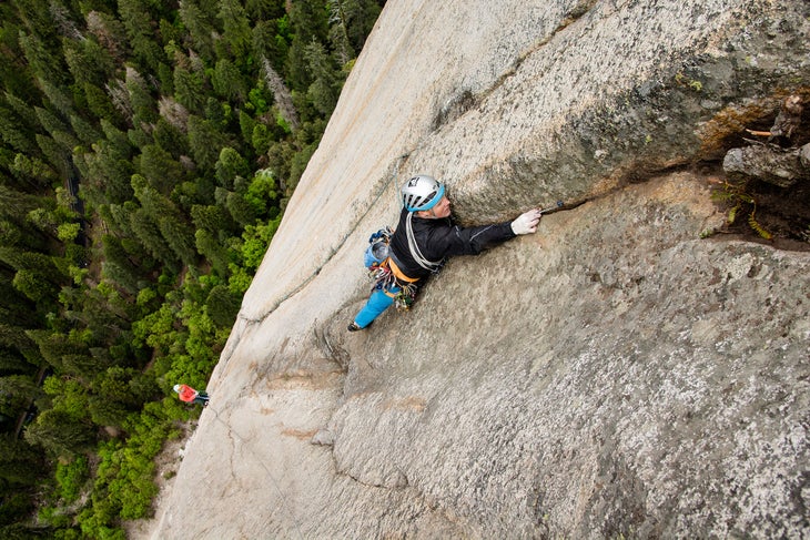 “Sounds bunk,” Billy warned. My feet greased off those acorns the moment I clipped the Bugaboo, which straightaway shot out, lobbing me down the wall and brazing a nasty red lesion in the back of Billy’s legs as I wrenched straight onto the belay bolts.