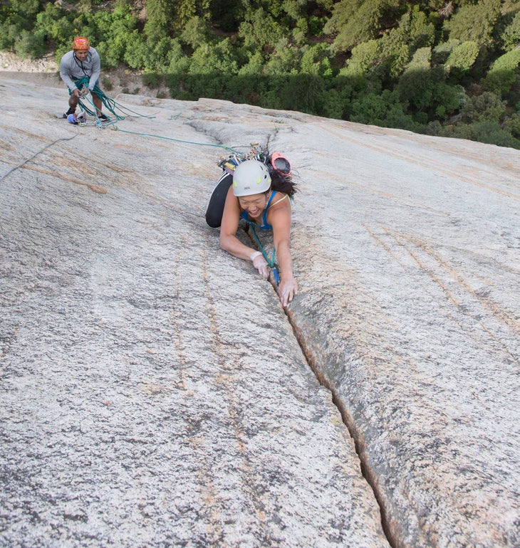 The prep took weeks, including dusting off the hanging garden that had grown back on pitch 8, where the infamous broken vine gaff had originally transpired. The pitch cleaned of dirt left a flawless 5.11 crack on which Rita took a cartwheel fall so spectacular it featured on Weekend Whippers. Ron punched it out at stiff 5.11. Marcus straightened out the last pitch via a dashing, 5.11 slab, the route ending at Planet Garcia, the tired ledge system at the bottom of the U-Shaped Bowl. Chelsea led the 160-f00t first pitch, which the team appraised at 5.12d, a historic achievement for Worrall and Bard back in 1978, and one of the most iconic free pitches in the Valley. All told, it took four generations of climbers 44 years to finally complete one of America’s greatest adventure climbs. And a scam or two along the way …