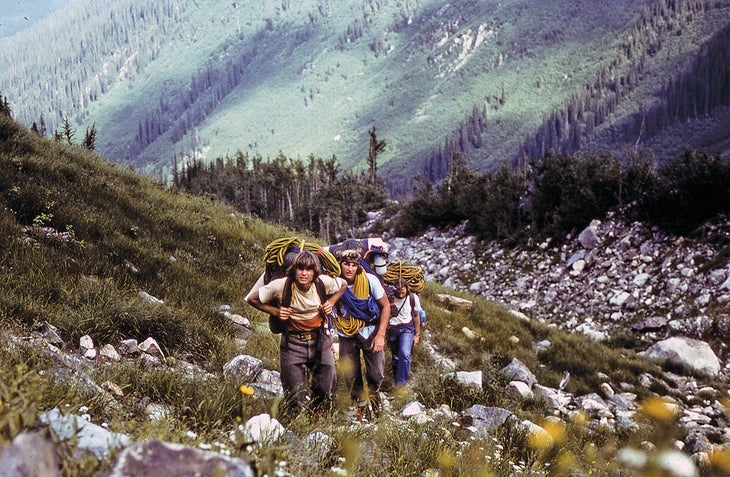 We dove into the most promising-looking gully and started descending toward the flats and the urban sprawl, where folks were spending their way to the Promised Land, hunkered in digs—bigger the better—arrayed with handsome stuff and significant people seeking meaning through theater, five-course meals, gadgets, witty conversation, prayer, sex and intoxicants. We weren’t so different in our search for prodigious experiences. But none of us kept a permanent address. We had dangerous dreams and rambling feet, and when they said go, we had to follow. We ate whatever food there was, generally skipping the belongings and formalities and going straight for the sex, intoxicants and a piece of rock with magnitude. Mainly we were broke—and I was sick of being broke. But I still prayed if I had to, and this time I meant it because little else could get us down a 2,500-foot, rotten gully with one rope and little gear.
