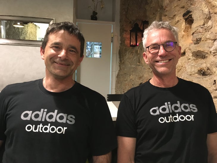 It would be a kick to write that meeting into a game, wouldn’t it? Let’s see how these simple human climbers react! And more fun still to dress me and Josep in the same clothes.