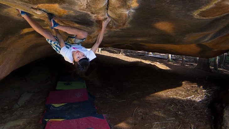 Ashima Shiraishi, now 20 years old, has been a climbing celebrity since elementary school and is no stranger to high-performing days. After picking up the sport at age six in New York City’s Central Park, she sent her first V10, Hueco’s Power of Silence, at age eight; her first V11s, Chablanke and Roger in the Shower, when she was nine; her first v13, Crown of Aragorn, when she was 10; and her first 5.14c, Southern Smoke, when she was 11. In the years since, she’s climbed 5.14d/5.15a, bouldered up to V15, won the 2917 Open U.S. Nationals in Sport Climbing, wrote the children’s book, How to Solve a Problem and was profiled by The New Yorker. On a trip to The Master Bedroom near New York City in the autumn of 2015, Shiraishi made the long-awaited second ascent of Matt Bosley’s Nuclear War (V14), then topped the day off by sending Wetness the Fatness (V12) and Reckless (V11).