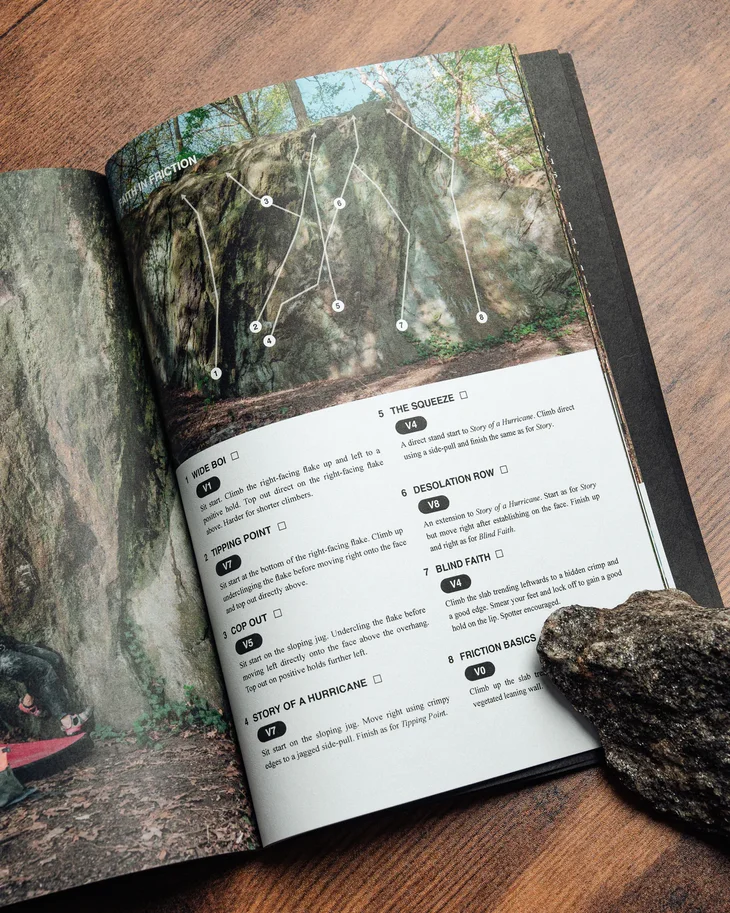 Now, with Zone Local, climbers Trevor Riley and Rachael Elliott have given them form: a new guidebook equal parts topo, design experiment, and archive. Closer to field notes than a coffee table book, it documents the persistence of climbing in New York—and the community that refused to let it vanish.