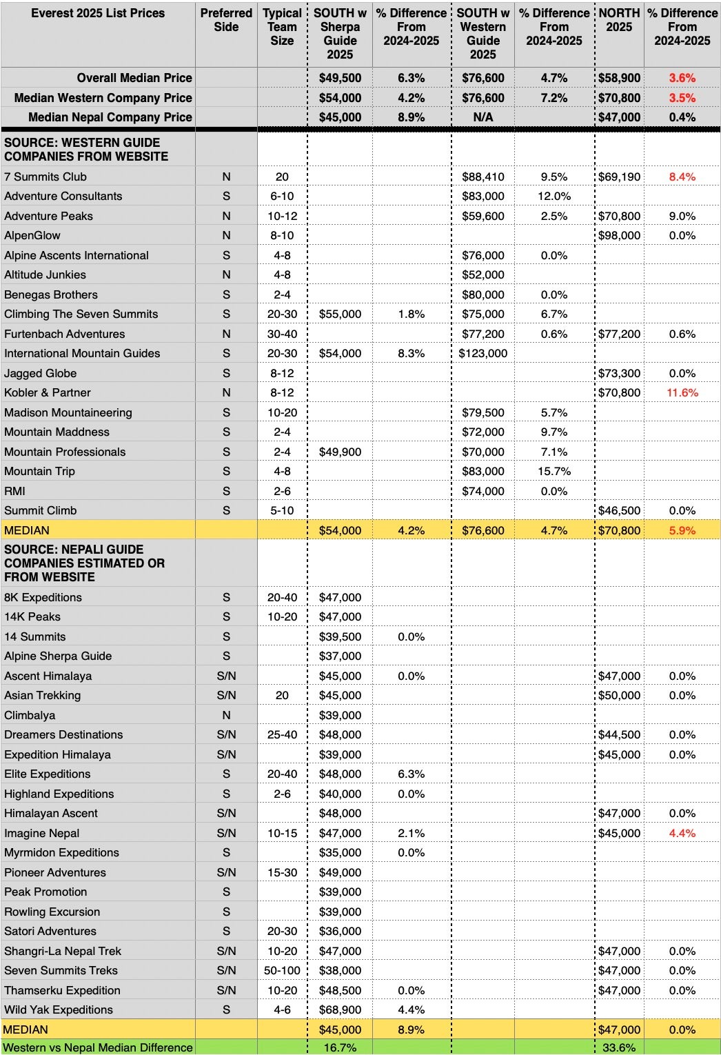 Current Median Prices for Climbing Everest in 2025