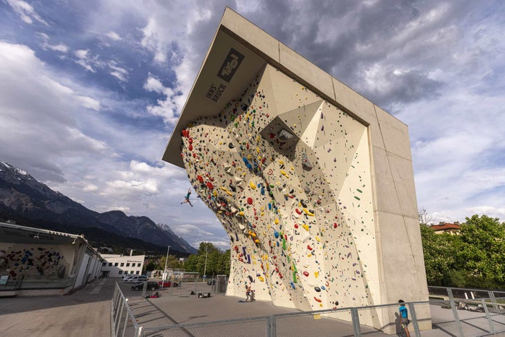 Area 47 in Austria’s Ötztal Valley is a sprawling outdoor adventure park that offers a slew of adventure sports, including rafting, caving, mountain biking, canyoneering, wakeboarding, and bungee jumping. It also has an 88-foot-tall outdoor climbing tower, with routes up to 5.13b. The wall is open from 9:00 a.m. to 9:00 p.m., offers both auto belays and lead routes, and costs just €8.
