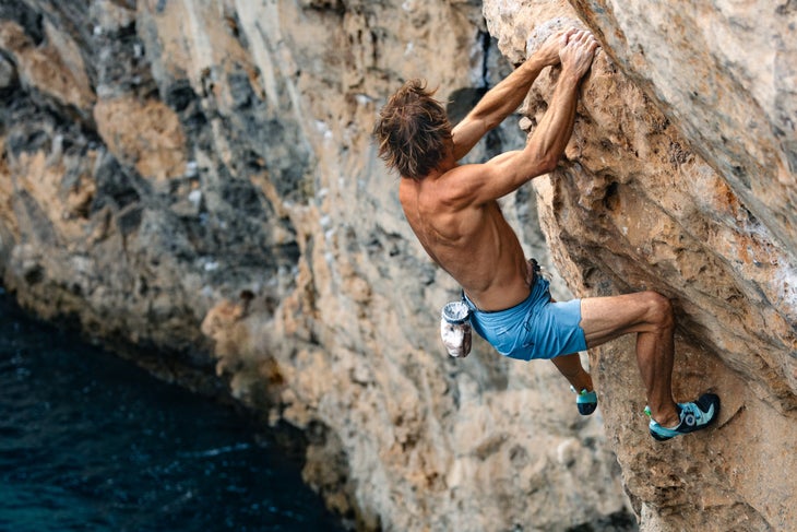Sharma: Deep water soloing is such an esoteric type of climbing that most people don’t really know much about. They see it and they’re like, “Wow, that’s amazing.” I’ve basically dedicated the last 20 years to it. Whenever I have the opportunity to initiate someone into that world, it’s really cool. Oftentimes, I’ll be climbing side by side with them on these retreats or whenever groups of friends come out from California. We’re way off the deck cruising around and we’re literally having a conversation on the wall together. Obviously, deep water solo implies being on your own, but oftentimes it’s actually together. Seeing the look on their face—they’re in this totally unique position they’ve never been in before. It’s an opportunity for people to experience climbing like they never have before.
