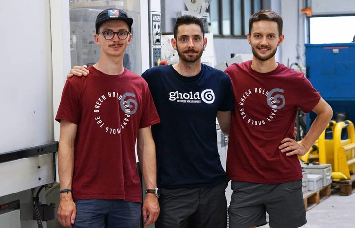 Meanwhile, in the French Alps, Ghold (pronounced “gold,” a nod to the precious metal that can be melted and recast indefinitely) wants to become the “Gore-Tex of climbing holds.” Basically, they hope to master the technology for other brands to harness. By melting thermoplastic polyurethane at a much higher temperature, a Ghold hold can be recycled up to 10 times before reaching the end of their lifespan. The three Frenchmen behind the operation have been testing their material for four years to ensure it’s durable enough to meet the needs of climbers. After tinkering with the formula, Sébastien Leprivey, a Ghold co-founder, told me that they now have the most durable PU holds on the market.