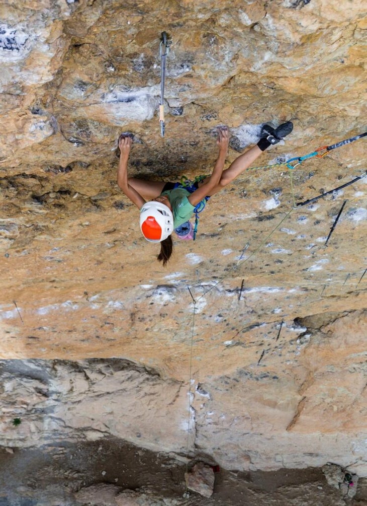 We asked Veronica and her parents why she wore socks on Fish Eye (5.14b). And does she usually climb in socks? Her answer: always. “I feel good wearing silk socks with climbing shoes,” Veronica told me between routes at Red River Gorge (where she’s currently aiming to become the youngest person to send 5.14c). “It’s like my second layer of skin—very thin and also hygienic.” She elaborates that with socks on, her feet “never feel sticky and stinky.”