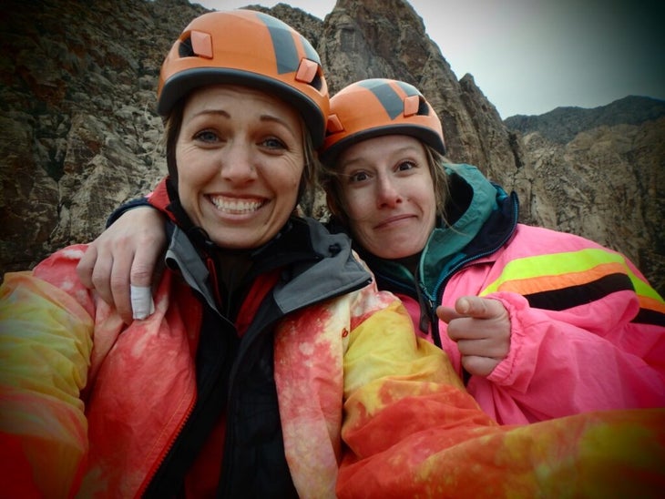 Lauryn and I have been climbing trad together for over a decade. Neither of us have had any mentors—just each other, figuring it out as we went. We’re notorious for running out lesser-known 5.9s, getting sandbagged, spending as much time off-route as on-route, occasionally dressing up in men’s Hawaiian t-shirts, and always being the ones having the most fun on the wall.