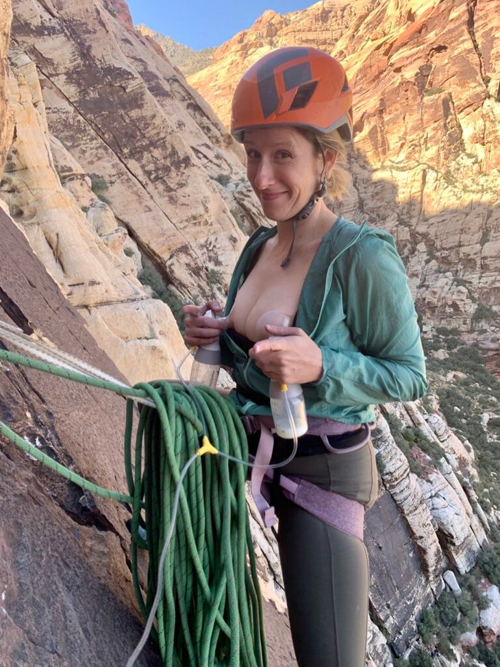 I near the top of the third pitch and inevitably, my phone’s alarm breaks the sobering silence. Its persistent, dull ring (and my engorged boobs) are telling me it’s time to hook up to the plastic vacuum pump with a mechanical whizz and try to get comfortable in a hanging belay while it sucks fluid out of my body so my eight month old at home can grow up knowing that his mom did indeed make the adequate sacrifices.