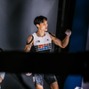 Boulder 2’s smeary, technical nature was, in my opinion, the least satisfying to watch: a repetitive series of desperately sloping feet and distant 3mm sidepull crimps. Competitors would invariably struggle to stand on their feet—or be unable to hold their swing as they lurched from bad hold to bad hold. The field’s performance was all over the place here: Ginés López barely reached zone 1, while many more peeled off going to the final hold. It seemed like Anraku was signed up for a predetermined fate as he painstakingly foot-matched on the blobby yellow feet between zone 1 and 2. But his patience was evident, and with a quiet, exacting strength he became the first and only climber to top Boulder 2.