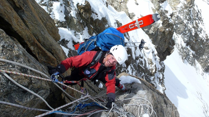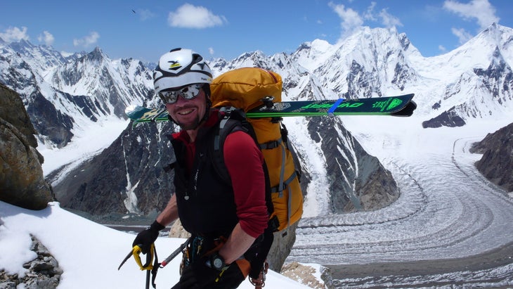 In 2006 he made the first ski descent of Gasherbrum II (8034 meters) along with Sebastian Haag (1978 – 2014) and Benedikt Böhm. In 2008 he made the first descent of the Diamer Face of Nanga Parbat (which he summited multiple times that season), clipping into his skis at 7,850 meters, 300 feet below the mountain’s top. In 2014, shortly after summiting Broad Peak (8,051 meters) with Alix and skiing off it, he climbed just past the 8,000-meter mark on K2 before being turned around by bad weather; he then skied from Camp 4 to the mountain’s base via the Kukuczka-Piotrowski Route (also sometimes called the Polish route)—the first ski descent of the line and the longest ski descent on K2 until Andrzej Bargiel linked the whole mountain in 2018.