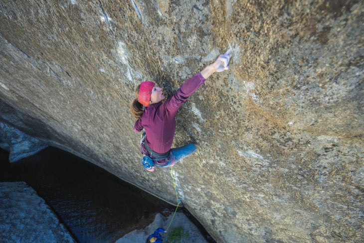 After being established by Beth Rodden in 2008, the route—which involves 60 feet of powerful laybacking and water-polished feet—waited a full ten years before Carlo Traversi made the second ascent after multiple seasons of attempts. On Instagram he called Rodden’s 2008 ascent “one of the most impressive achievements I can think of in the last few decades.” (You can watch Traversi climb Meltdown here.)